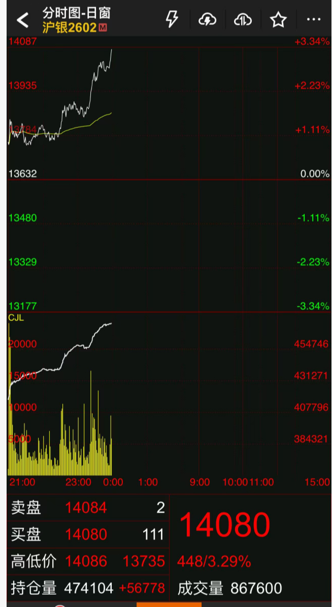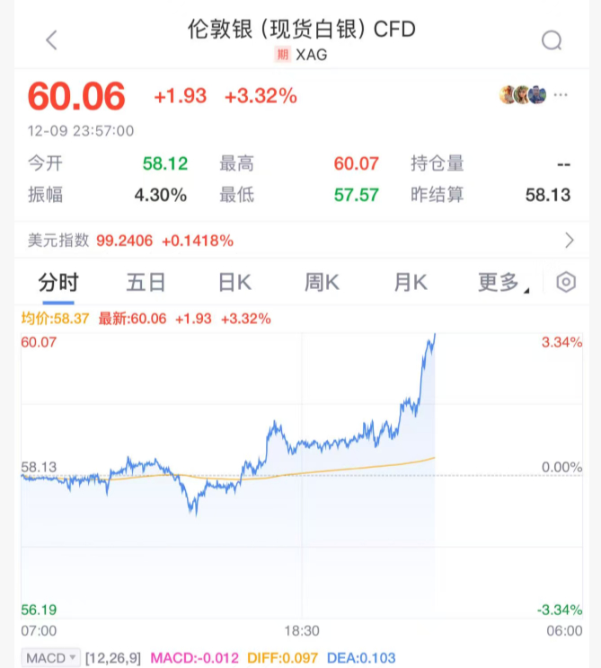 12月9日晚间,黄金小幅走高,白银则攀升至历史新高。现货白银首次站上60美元/盎司的心理关口,纽约期银也首次站上60美元/盎司,沪银主力合约现涨幅超过3%,最高涨至14086元/千克,续创历史新高。