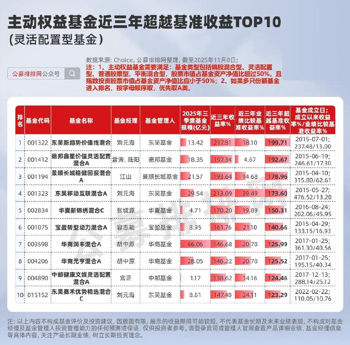 灵活配置型TOP10:上榜门槛最高,超过120%!东吴刘元海夺冠