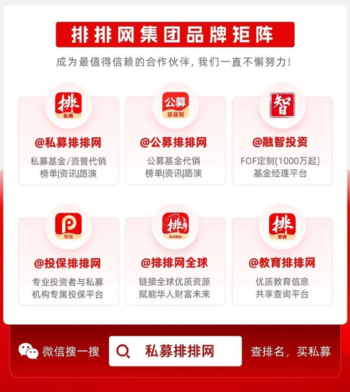 【风险揭示】:投资有风险,本资料涉及基金的过往业绩不预示其未来表现,基金管理人管理的其他基金的业绩并不构成基金业绩表现的保证,我司未以明示、暗示或其他任何方式承诺或预测产品未来收益。我司无法对排行所用基础数据的真实性、准确性、完整性作出实质性判断和保证,投资者须以中国证监会资本市场电子化信息披露平台、基金管理人官方网站及其委托的基金估值核算机构发布的内容为准。投资者应谨慎注意各项风险,认真阅读基金合同、基金产品资料概要等销售文件,充分认识产品的风险收益特征,并根据自身情况做出投资决策,对投资决策自负盈亏。我司不从事任何基金评价业务,私募排排网公布的任何评定结果均为内部研究结果,仅供参考,不构成投资建议。
