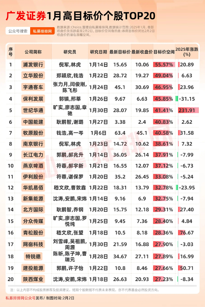 华创证券、中信建投、浙商证券2月高目标价空间个股相继曝光!