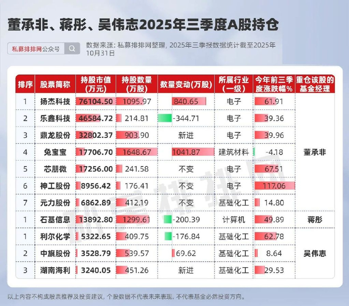 董承非、吴伟志、蒋彤重仓股曝光!