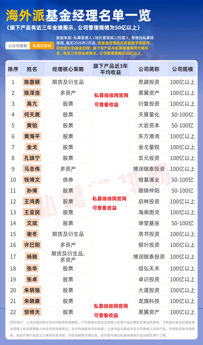 海外派私募基金经理通常指曾在海外知名金融机构(如对冲基金、投行等)深耕数年,后回国创立或加入国内私募机构的管理人。近三年来,在美联储政策剧烈转向、地缘政治风险频发及港股估值重构、AI科技浪潮的复杂环境中,这一群体迎来了全球宏观研判能力与本土落地执行力的双重压力测试。
