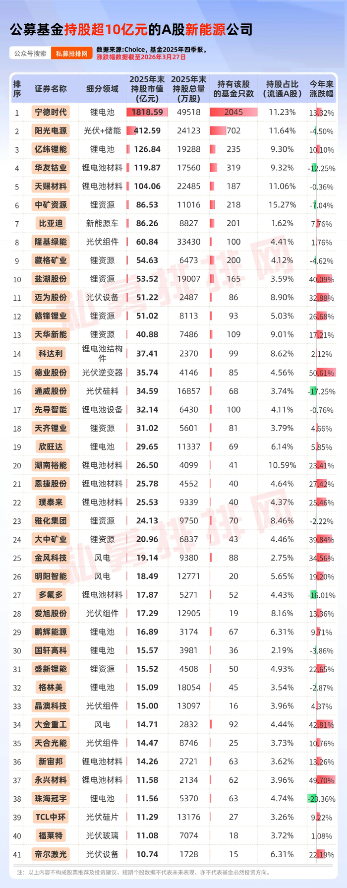 41只新能源股被基金持股均超10亿元!9只锂矿股在列!