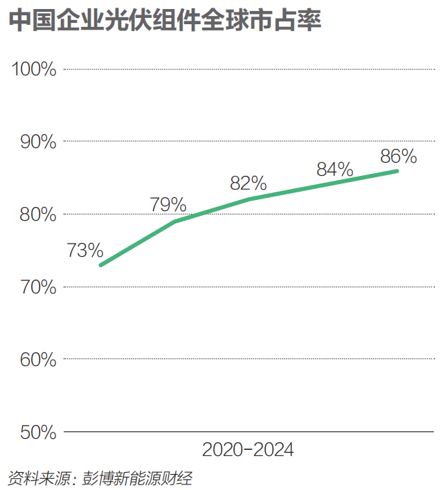 谭佑儒说,不需要过度担心海外产能挑战中国光伏企业,因为大部分海外产能都严重依赖中国供应链,近年来中国光伏制造商的全球市场占有率一直在提升。以光伏组件为例,从2020年到2024年,中国企业的全球市场占有率分别是:73%、79%、82%、84%、86%。