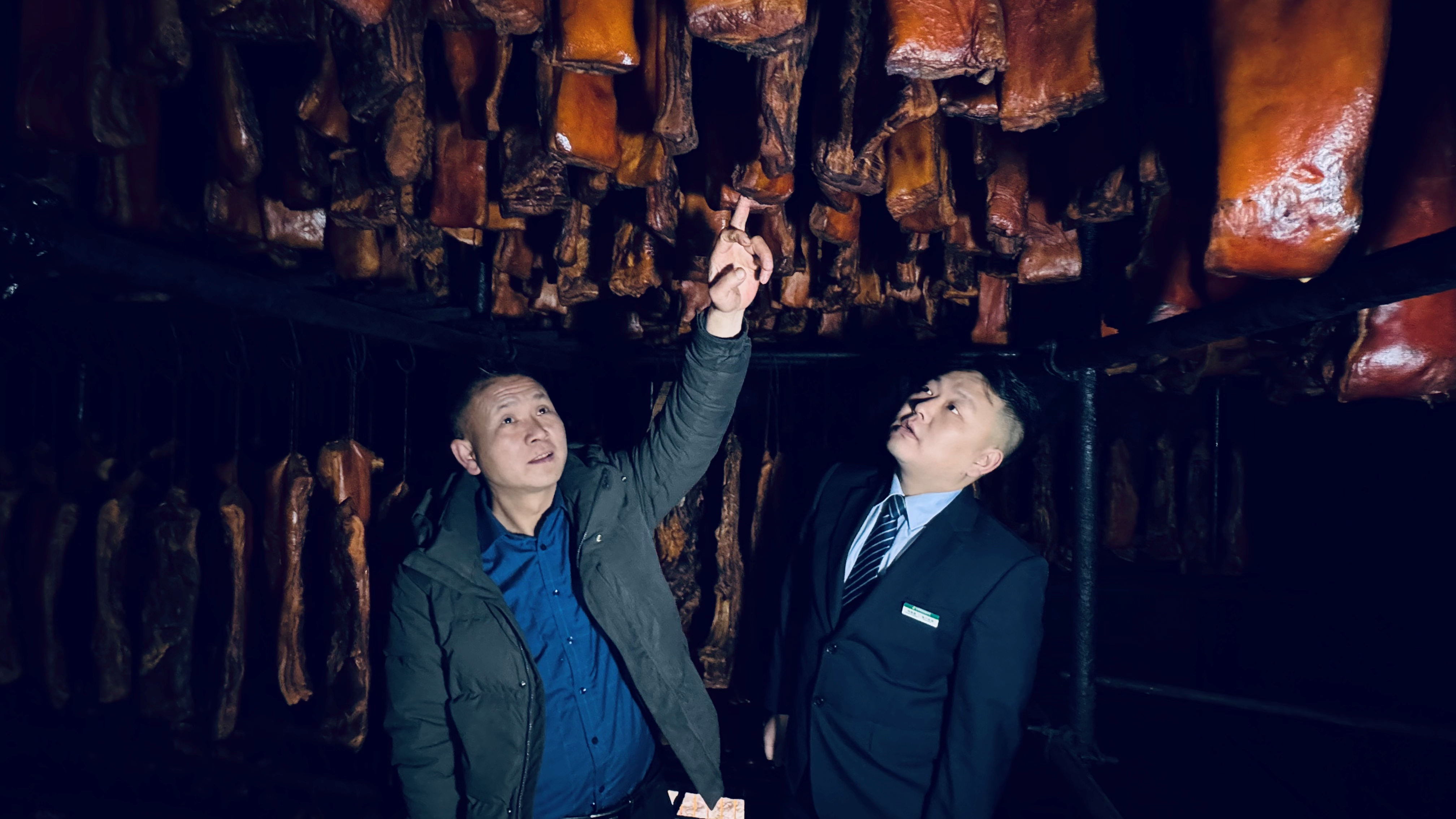 图为满满当当的香肠悬挂在铁架之上,正在进行风干工序。随着马年春节的销售旺季临近,企业需要进一步扩大产能、完善设施、储备优质原料,资金成为程鹏食品面临的现实问题。