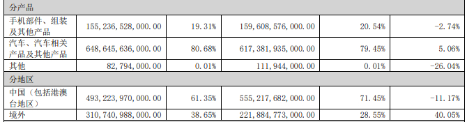 两项核心业务的毛利率上,汽车业务的毛利率为20.49%,手机业务的毛利率为6.29%。