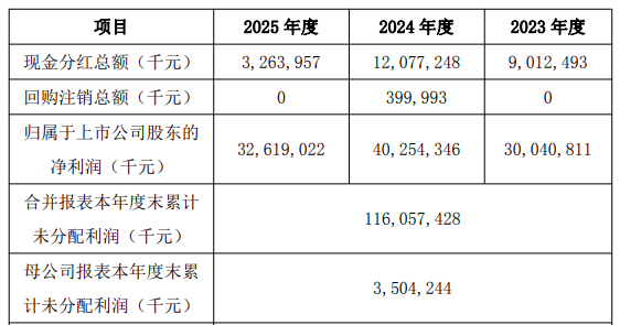 在连续多年大额现金分红后,比亚迪今年的年度利润分配预案为:拟向全体股东每10股派发现金红利人民币3.58元(含税),现金红利总额约为32.64亿元,占2025年度净利润的约10.01%;不送红股,不以公积金转增股本。