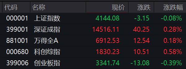 沪指跌0.08%,深成指涨0.28%,创业板指跌0.39%。科创综指涨0.58%。PCB概念股走高,电力、半导体、液冷服务器概念活跃,保险、房地产、贵金属板块走低。全市场超2900只个股下跌。