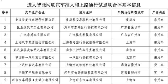 下一步,两款车型将分别由重庆长安车联科技有限公司、北京出行汽车服务有限公司两家使用主体在上述区域内开展上路通行试点。