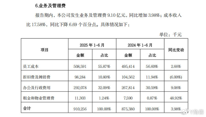 上半年,员工成本总额较2024年同期保持一定幅度增长。三季度仍然保持了这一趋势,截至9月30日,含有员工成本的业务及管理费较上年同期增长了2%。