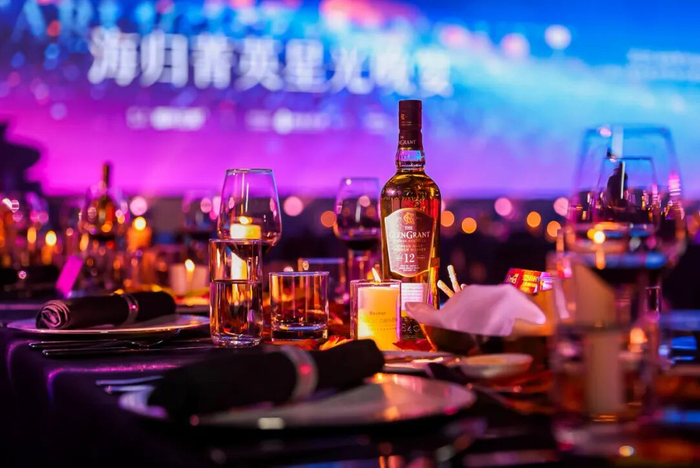 晚宴环节,福布斯中国集团战略发展总经理孙茗旭、纽通咨询董事长李重远和复旦大学经济学院客座教授符锦等嘉宾致辞,核心强调海归群体需从“单向回归”迈向“双向赋能”,共同构建全球价值循环网络。值得一提的是,晚宴烈酒合作伙伴金巴厘集团旗下格兰冠单一麦芽威士忌为星光晚宴提供了独具特色的产品支持。
