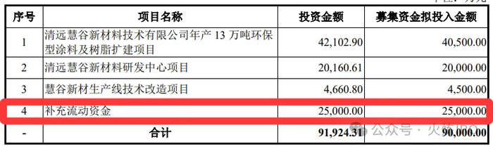 此次IPO,慧谷新材计划募集90,000万元资金,主要用于产能扩张。其中清远慧谷年产13万吨环保型涂料及树脂扩建项目拟投入40,500万元,占总募集资金的45%。