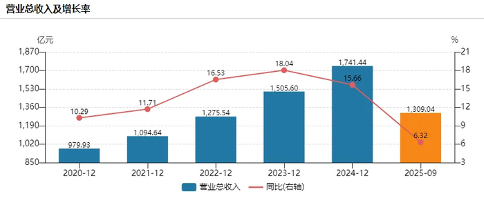 2020年,茅台营收还不足千亿,2024年已达1741.44亿,今年前三季度已实现1309.04亿的收入,远超2020年全年。
