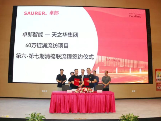 - 2024年10月16日,宏源科技与永荣锦江签订HY—AT6空变机战略合作协议;恒天重工与河北金怡签署涤纶短纤维后处理生产线战略合作协议,郑州华萦与中润科技签订ZWT616-180型卷绕设备合同;经纬纺机与无锡灵奕智能签署细纱机生头机器人项目,还与新疆永昶签署1万头气流纺成套项目战略合作协议,打造新疆首个经纬全流程气流纺样板工厂。