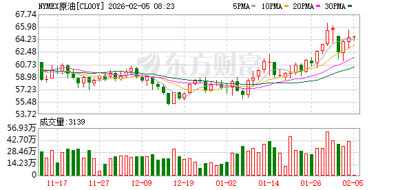 截至2月4日收盘,WTI 3月原油期货收涨3.05%,报65.14美元/桶;布伦特4月原油期货收涨3.16%,报69.46美元/桶。上期所原油期货主力合约夜盘收涨3.32%,报473.5元/桶。