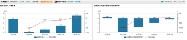 Wind数据显示,2020年至2025年前三季度,诺诚健华营业收入从百万级别飙升至11.15亿元,同比增速59.8%。
