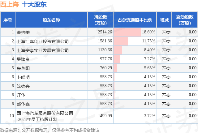 证券之星消息,9月17日西上海发布公告《西上海:西上海持股5%以上股东权益变动触及1%刻度暨减持股份结果公告》,其股东上海汇嘉创业投资有限公司于2025年9月9日至2025年9月17日间合计减持134.55万股,占公司目前总股本的0.9999%,变动期间该股股价下跌0.34%,截止9月17日收盘报20.3元。