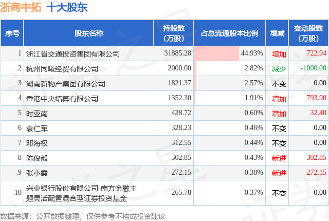 根据浙商中拓2025年中报公布的十大股东详情如下: