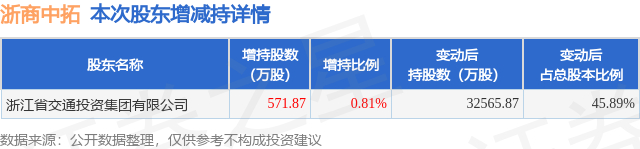 证券之星消息,10月9日浙商中拓发布公告《浙商中拓:关于控股股东增持公司股份计划实施结果的公告》,其股东浙江省交通投资集团有限公司于2025年9月18日至2025年10月8日间合计增持571.87万股,占公司目前总股本的0.8058%,变动期间该股股价下跌1.29%,截止9月30日收盘报6.12元。
