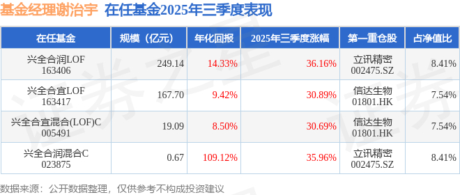 证券之星消息,截止2025年三季度末,基金经理谢治宇旗下共管理4只基金,本季度表现最佳的为兴全合润LOF(163406),季度净值涨36.16%。
