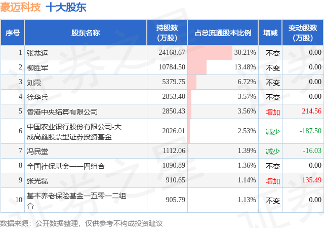 根据豪迈科技2025年三季报公布的十大股东详情如下: