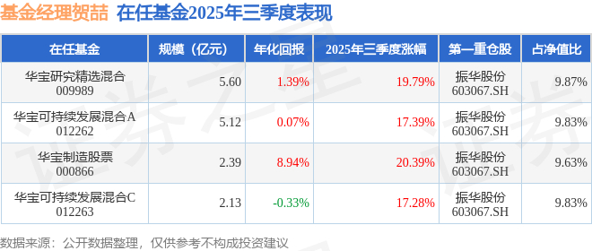 证券之星消息,截止2025年三季度末,基金经理贺喆旗下共管理4只基金,本季度表现最佳的为华宝制造股票(000866),季度净值涨20.39%。