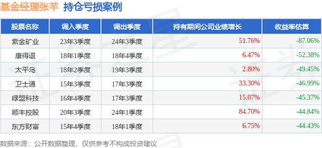 张芊管理的广发聚荣一年持有混合A基金在23年3季度买入紫金矿业,在持有1年又0个季度后在24年3季度卖出。持有期间的估算收益率为-87.06%,持有期间紫金矿业在2023年到2024年的年报归属净利润增幅达51.76%。