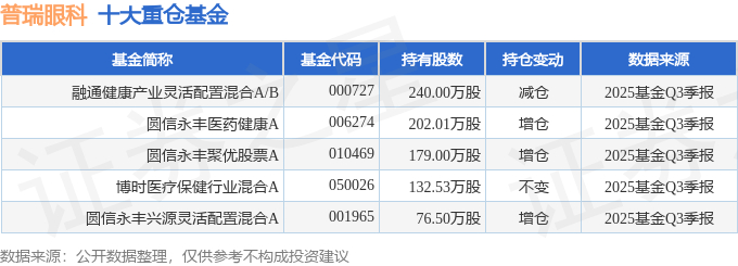 持有普瑞眼科最多的基金为融通健康产业灵活配置混合A/B,目前规模为18.16亿元,最新净值2.819(10月28日),较上一交易日下跌0.04%,近一年上涨10.11%。该基金现任基金经理为万民远。