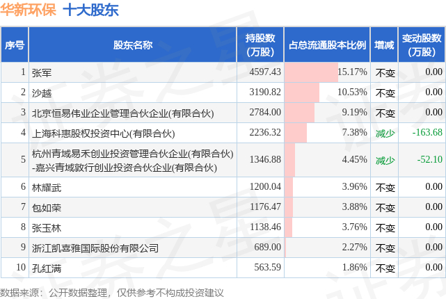 根据华新环保2025年三季报公布的十大股东详情如下: