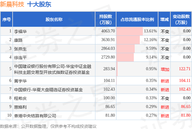 根据新晨科技2025年三季报公布的十大股东详情如下: