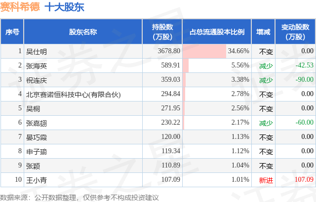 根据赛科希德2025年三季报公布的十大股东详情如下:
