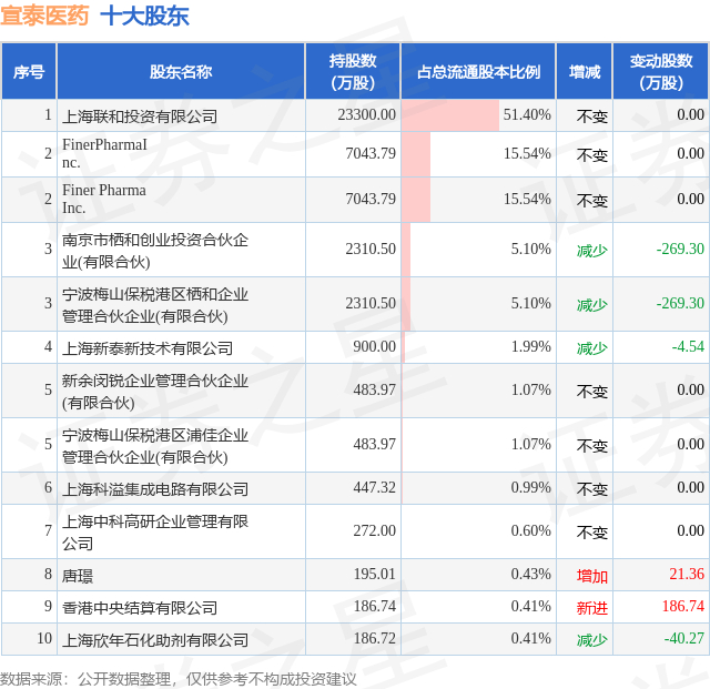 根据宣泰医药2025年三季报公布的十大股东详情如下: