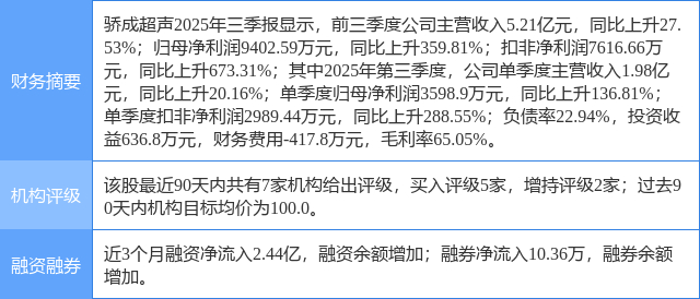 2025年10月30日,东吴证券研究员曾朵红,阮巧燕,朱家佟发布了对骄成超声的研报《2025年三季报点评:业绩符合预期,先进封装实现突破》,该研报对骄成超声给出“买入”评级。研报中预计公司25-27年归母净利1.3/2.4/4.1亿元(此前预期1.5/3.0/5.0亿元),同比+57%/+75%/+72%,对应PE99/57/33x,维持“买入”评级。证券之星数据中心根据近三年发布的研报数据计算,该研报作者对此股的盈利预测准确度为72.59%。