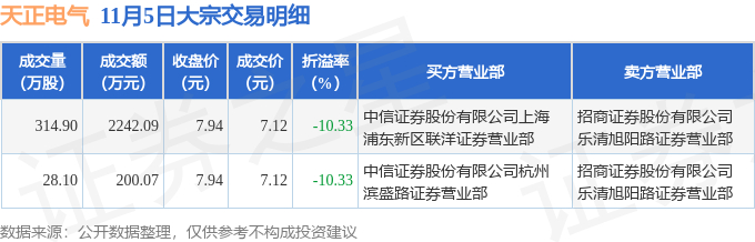 证券之星消息,11月5日天正电气发生大宗交易,交易数据如下: