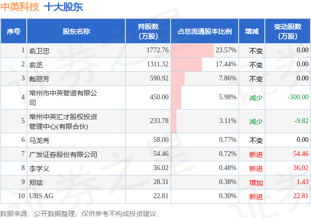 根据中英科技2025年三季报公布的十大股东详情如下: