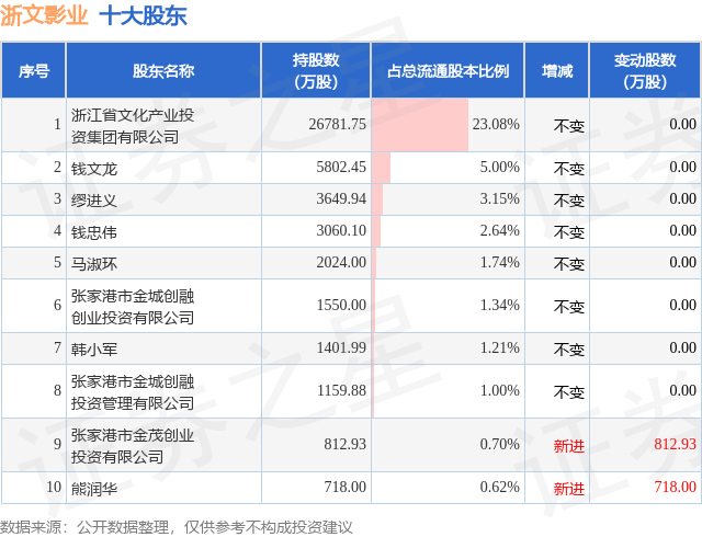 根据浙文影业2025年三季报公布的十大股东详情如下: