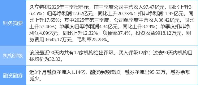 今日久立特材(002318)涨6.92%,收盘报26.56元。