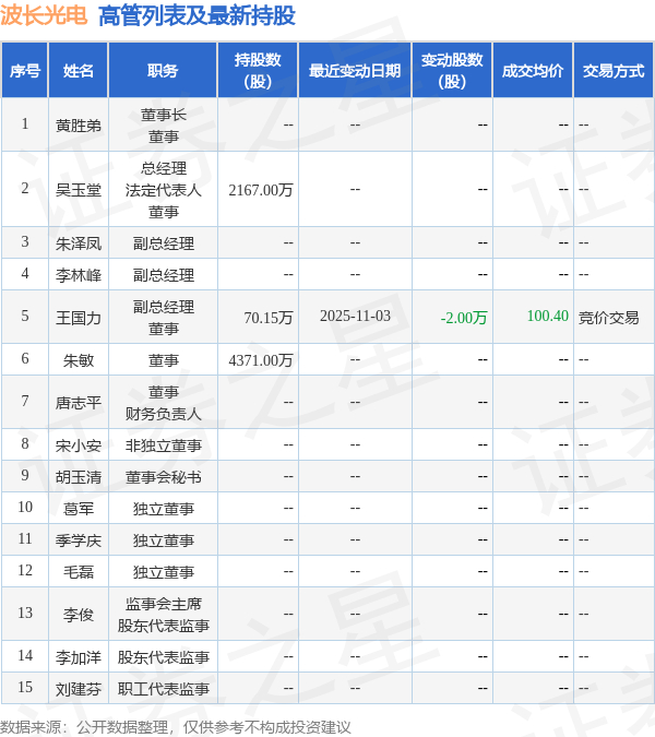 波长光电近半年内的董监高及核心技术人员增减持详情如下: