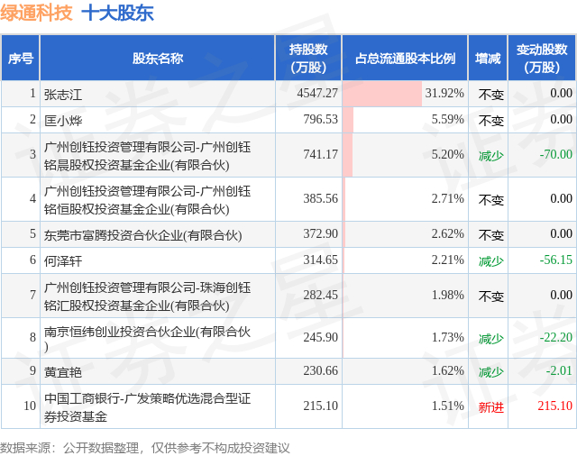 根据绿通科技2025年三季报公布的十大股东详情如下: