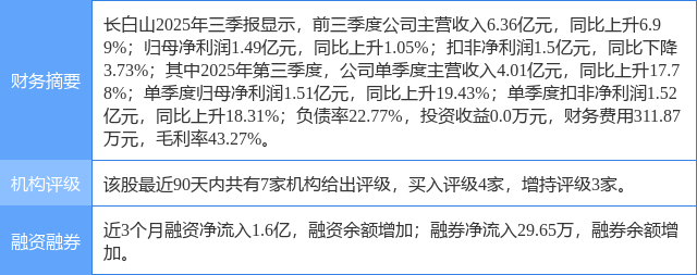 2025年10月31日,开源证券研究员初敏,叶彬慧发布了对长白山的研报《公司信息更新报告:2025Q3暑期客流复苏强劲,Q4交通改善蓄力新一轮冰雪季》,该研报对长白山给出“买入”评级。研报中预计2025-2027年归母净利润1.77/2.14/2.53亿元(前值为1.98/2.35/2.78亿元),yoy+22.4%/+21.0%/+18.6%,对应EPS0.66/0.80/0.95元,当前股价对应PE为78.3/64.7/54.6倍,Q4高铁红利释放仍有望驱动新冰雪季客流景气,维持“买入”评级。证券之星数据中心根据近三年发布的研报数据计算,该研报作者对此股的盈利预测准确度为68.94%。
