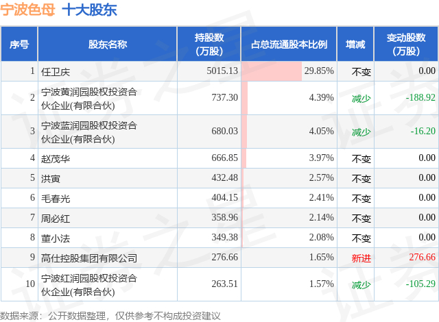 根据宁波色母2025年三季报公布的十大股东详情如下: