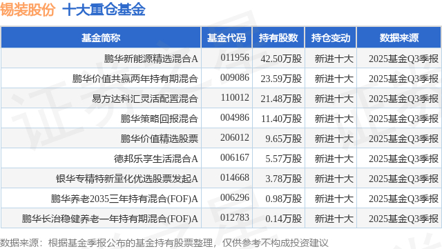 根据2025基金Q3季报公募基金重仓股数据,重仓该股的公募基金共9家,其中持有数量最多的公募基金为鹏华基金的鹏华新能源精选混合A。鹏华新能源精选混合A目前规模为6.07亿元,最新净值1.239(11月13日),较上一交易日上涨2.91%,近一年上涨39.17%。该公募基金现任基金经理为张宏钧。张宏钧在任的基金产品包括:鹏华汇智优选混合A,管理时间为2025年2月13日至今,期间收益率为22.1%。