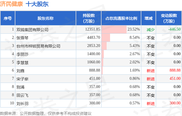 根据济民健康2025年三季报公布的十大股东详情如下: