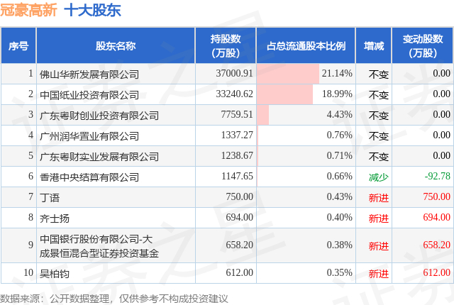 根据冠豪高新2025年三季报公布的十大股东详情如下: