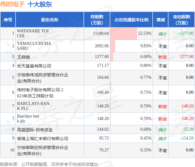 根据伟时电子2025年三季报公布的十大股东详情如下: