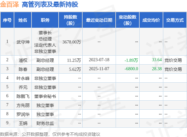 金百泽近半年内的董监高及核心技术人员增减持详情如下: