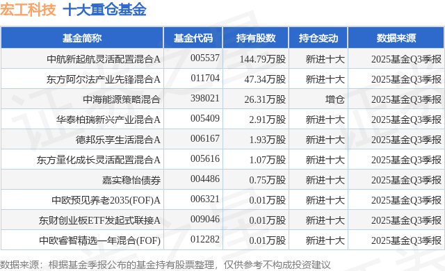 重仓宏工科技的前十大公募基金请见下表: