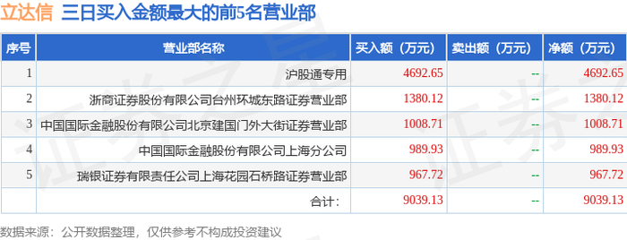 证券小知识:龙虎榜是交易所披露的竞价交易公开信息,现身龙虎榜的个股都是当日最为活跃的个股,是投资者日常重点关注的数据。交易所公布当日买入金额和卖出金额前五名的席位,其中一些席位代表特殊意义,如机构专用席位是指基金专用席位、券商自营专用席位、社保专用席位、券商理财专用席位、保险机构专用席位、保险机构租用席位、QFII专用席位等机构投资者买卖证券的专用通道和席位。深股通专用、沪股通专用为北向资金的交易席位。从龙虎榜数据可以发现和研究机构、游资和散户的资金动向。一些营业部席位经常上榜,市场知名度较高,投资者整理代表散户、游资、量化等不同资金的营业部席位。