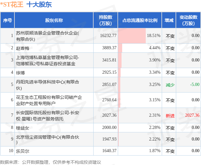 根据*ST花王2025年三季报公布的十大股东详情如下: