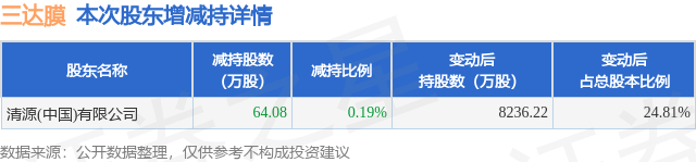 证券之星消息,11月21日三达膜发布公告《三达膜:关于持股5%以上股东权益变动触及1%刻度暨减持股份结果公告》,其股东清源(中国)有限公司于2025年11月14日至2025年11月21日间合计减持64.08万股,占公司目前总股本的0.193%,变动期间该股股价下跌0.39%,截止11月21日收盘报17.77元。